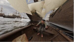 In onze VR scenes zie je deze plekken niet als stille monumenten maar als drukke locaties waar schepen zich klaarmaakten voor vertrek óf net aankwamen onder luid gejuich van de haven.